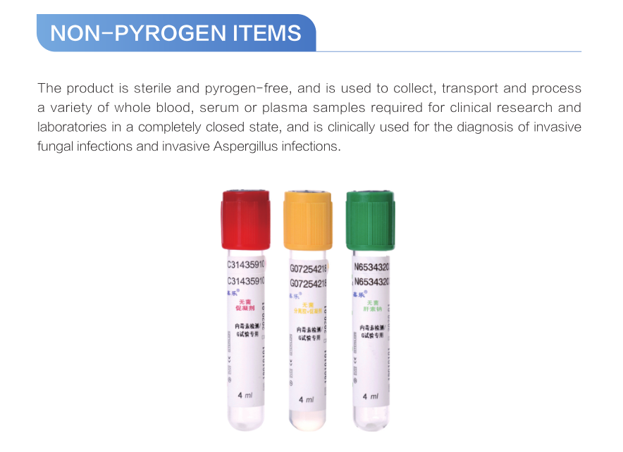 The product is sterile and pyrogen-free, and is used to collect, transport and process a variety of whole blood, serum or plasma samples required for clinical research and laboratories in a completely closed state, and is clinically used for the diagnosis of invasive fungal infections and invasive Aspergillus infections.